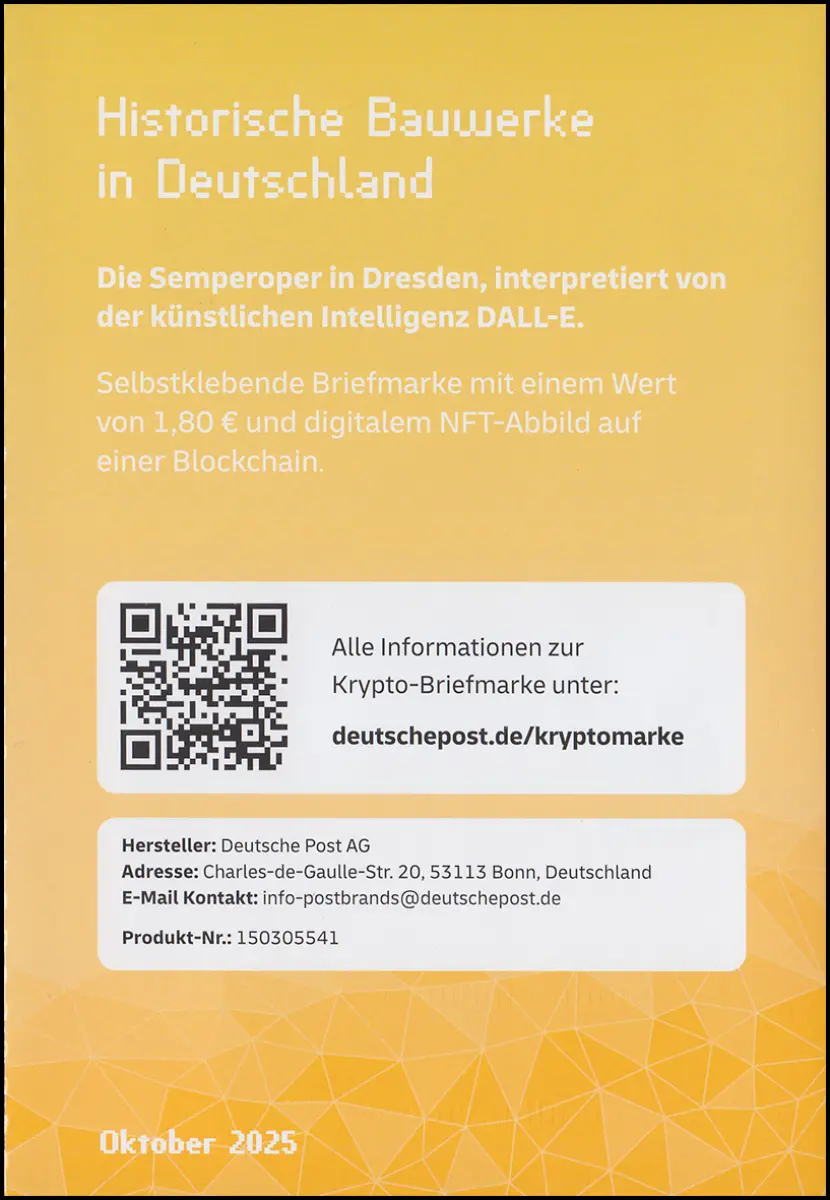 133a Markenheftchen GELB mit 3931 Semperoper, laufende Nr. ÜBER 50000, **