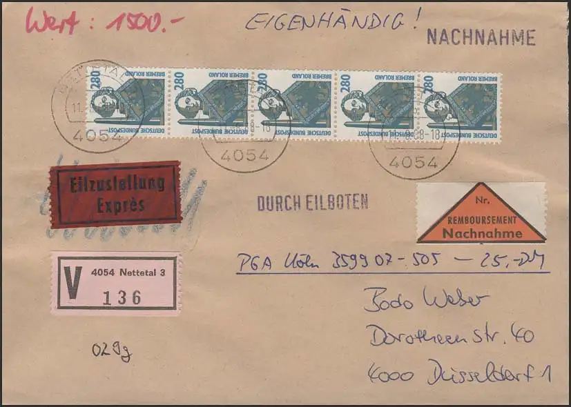 1381 SWK 280 RM-5er-Str. avec numéro portoger. propre valeur NN-FDC Nettetal