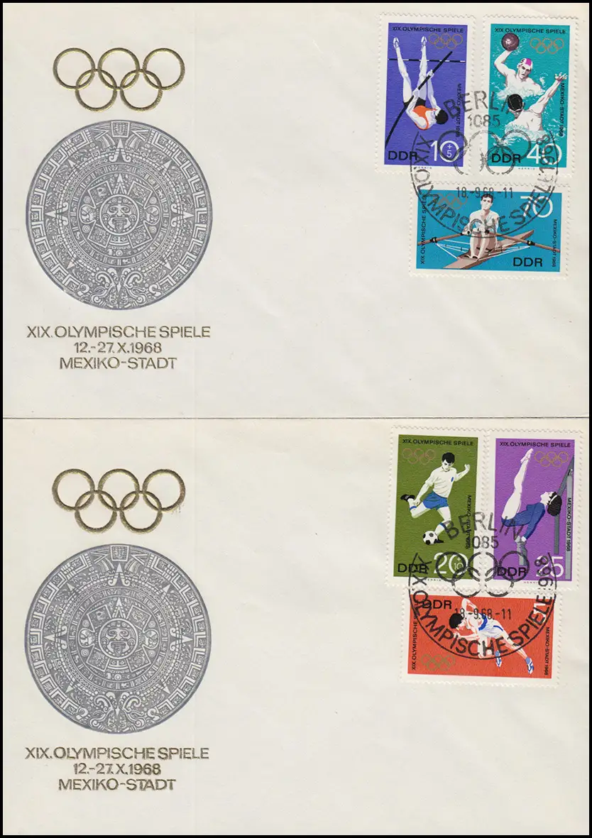 1404-1409 Olympia: Olympische Spiele Mexiko 1968 - Satz auf FDC 1 und FDC 2