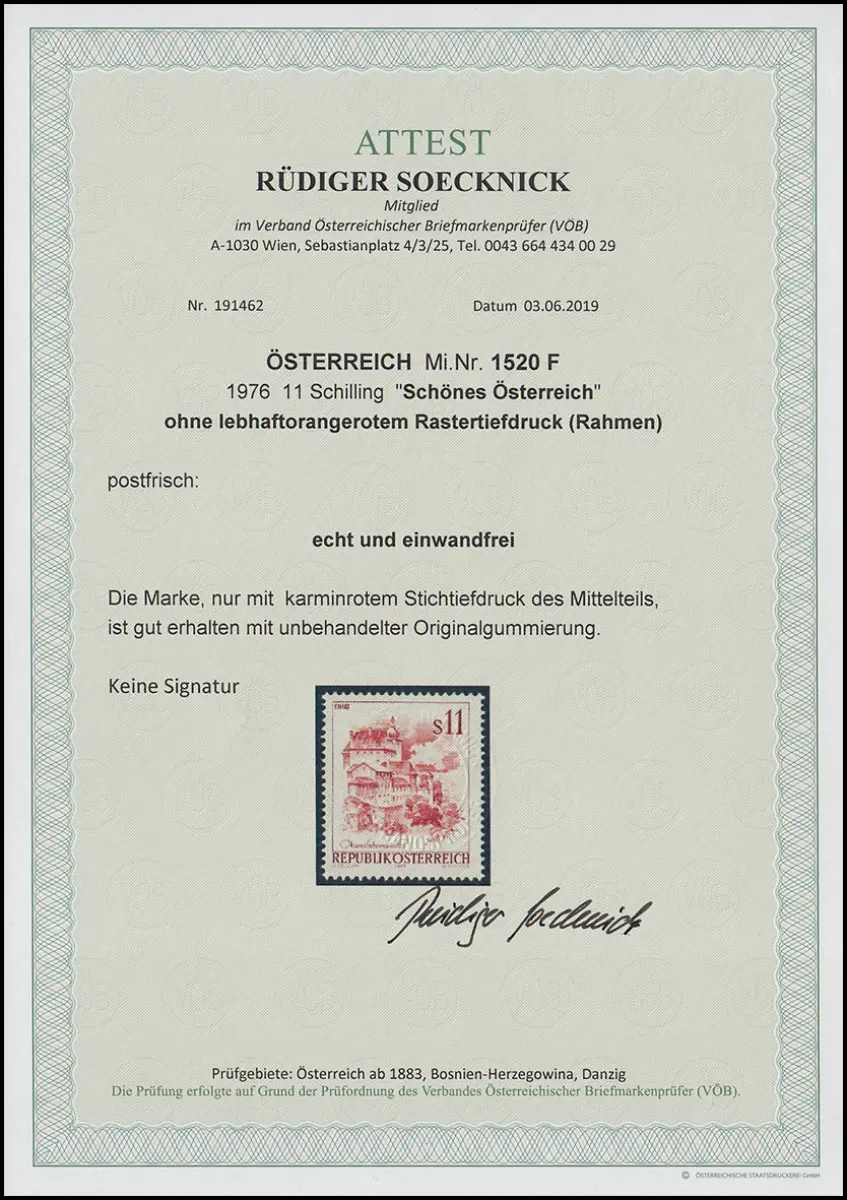 postfrische einwandfreie Abart, Fotoattest Soecknick VÖB