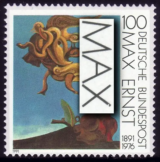 1569I Max Ernst 1991 avec PLF I blanc dans le X de MAX, champ 13, **