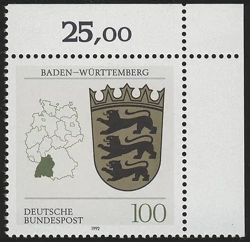 1586 Armoiries du Land Baden-Württemberg 100 Pf ** Coin o.r.