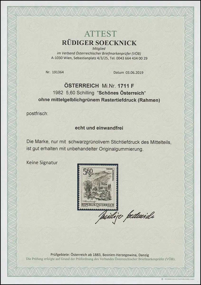 1711 F Schönes Österreich 5,60 S - ohne Rastertiefdruck (Rahmen), ** Fotoattest