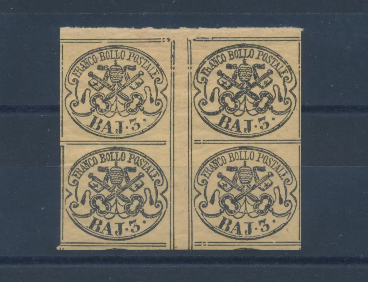 1852 Kirchenstaat, 3 Baj gelb chrom, Nr. 4A, 2 Paar mit Gruppenabstand, MLH*/MNH** Sachsen Euro 1145 Blackbox
