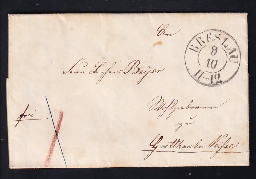 1856 K2 BRESLAU 9.10. autf Brief nach Ghrotthau bei Neisse