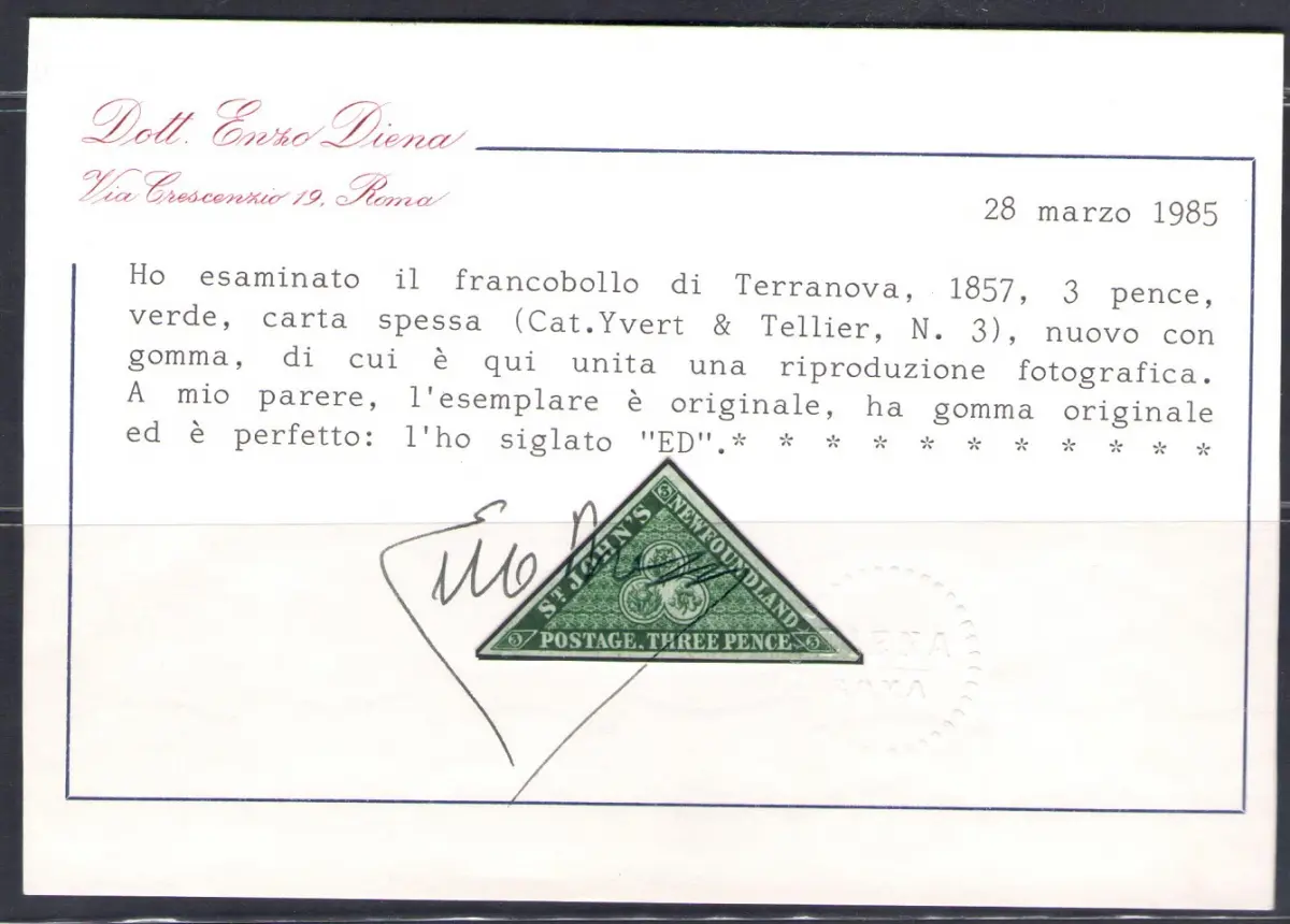 1857-64 TERRANOVA SG 3 - 3 Pence gelbgrün - MH* Stanley Gibbons Nr. 3 £ 2.000 - Lot rote Kolonien
