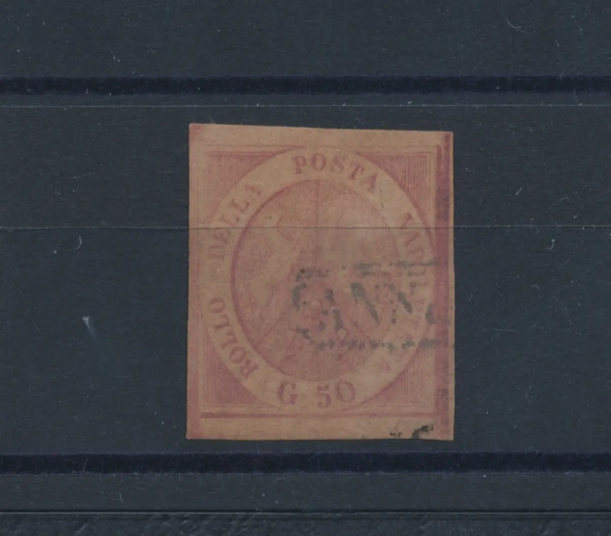 1858, NAPOLI, Nr. 14, 50 Körnung ROSA Brunastro, ausgiebig signiert Enzo Diena, gebraucht - RAR Sächsischer Katalog Euro 5000 Black Box