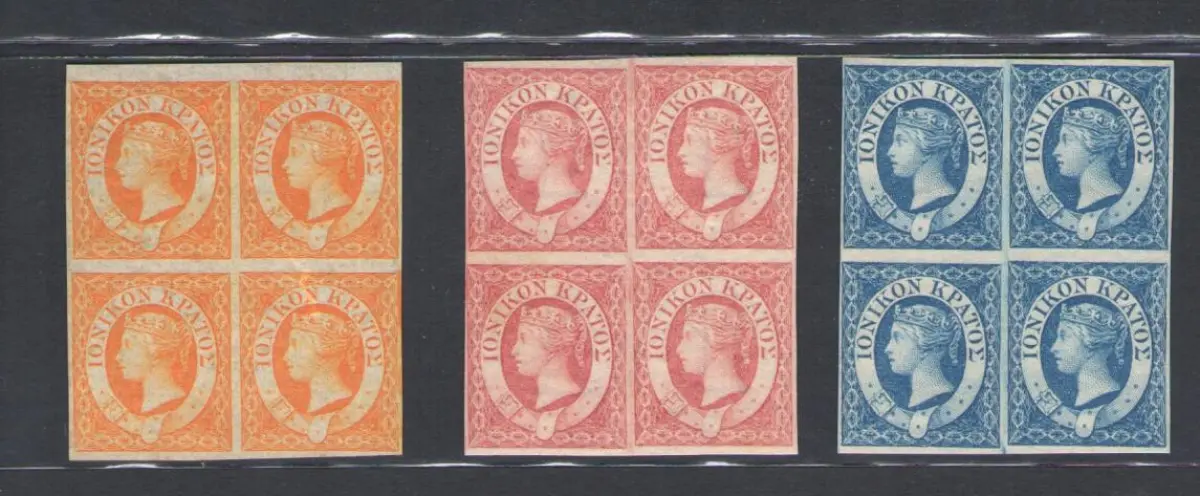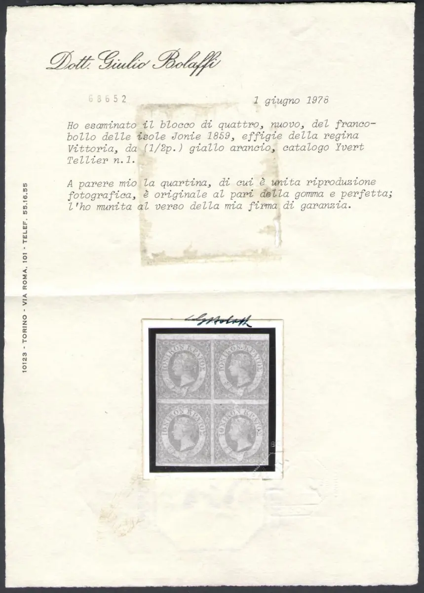 1859 Ionische Insel - SG Nr. 1/3, MH* - Original ED VOLLGUMMI, Signaturen Giulio Bolaffi auf der Rückseite Stanley Gibbons £ 920++++ - Lot rote Kolonien