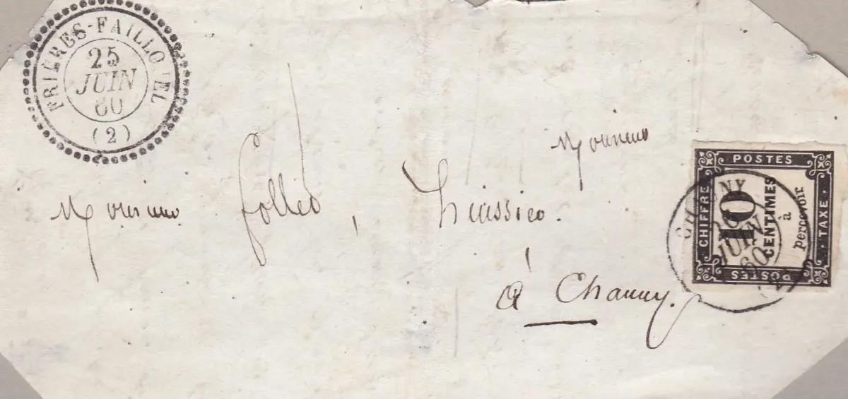 1860 FRANKREICH, Titelblatt frankiert mit Steuer 10 c. schwarz A / Buchstaben