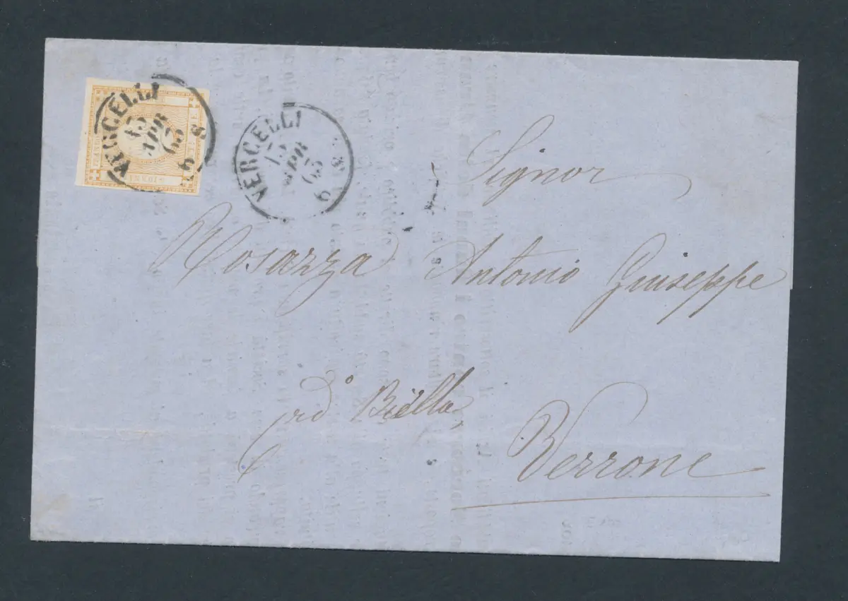 Der Umschlag wird immer mit Briefmarken in Lire oder Euro frankiert, um ein philatelistisches Porto zusammenzustellen.