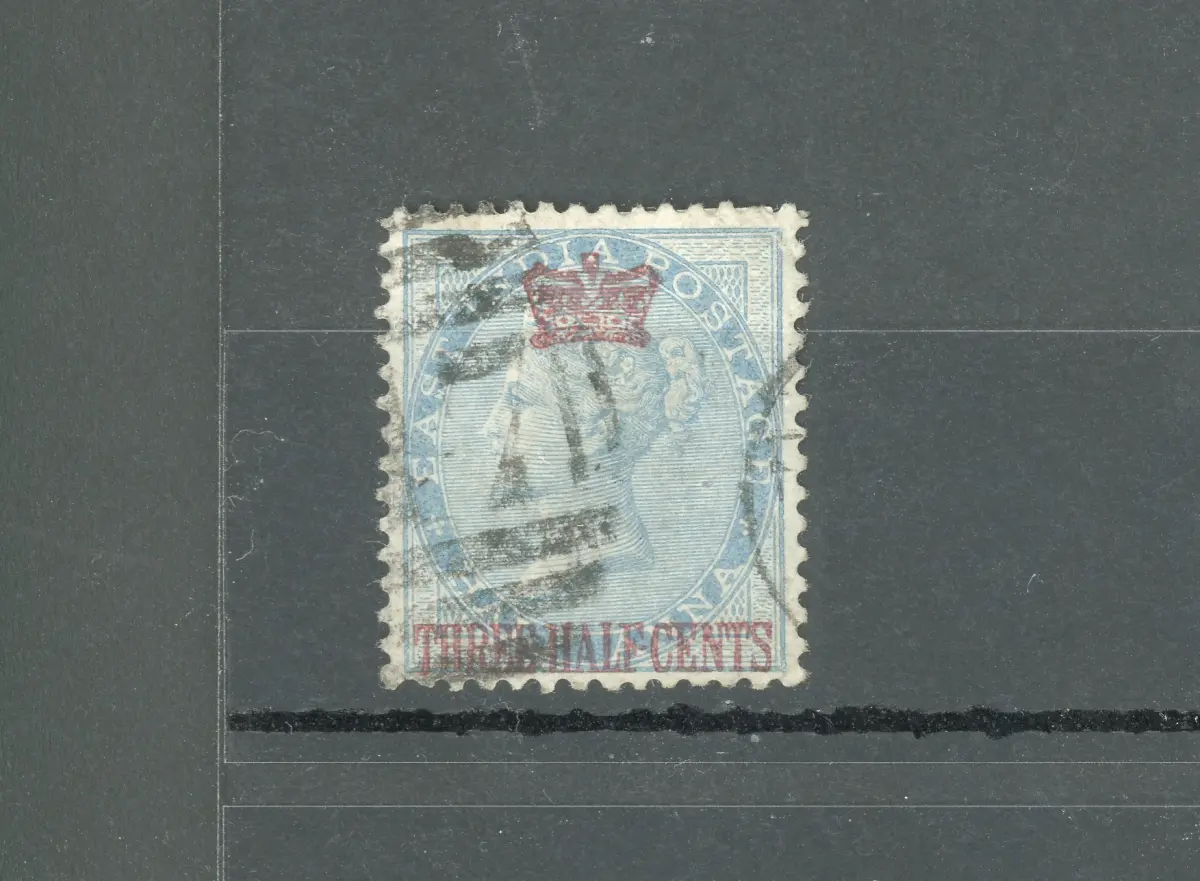 1867 Straits Settlements, Stanley Gibbons No.1 - Regina Victoria - 1 1/2 on 1/2 a. blue - Gebraucht