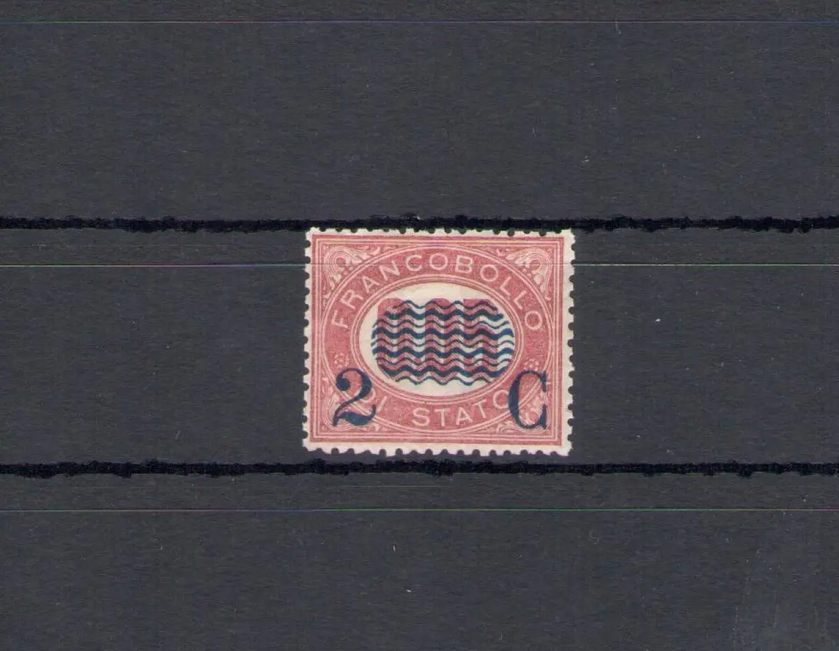 1878 Königreich Italien, 2 Cent auf 0,05 Lack, Nr. 30, 'Service überdruckt', MNH ** - Zertifikat Cilio mit der Aufschrift 'Es' perfekt, optimal zentriert' Vollgummi und Original - ohne Linguella - Not Hinged Lot Claudio Sächsischer Katalog Nr. 30 Euro 2250 (sehr gute Zentrierung) - ROTE BOX AUSSEN