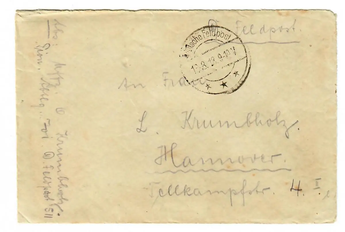 18.8.1918 Lettre du FP de la Mer Morte contenant le contenu sur le PF-Office 372 I Damas-Hannover