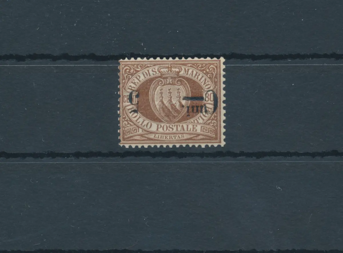 1892 SAN MARINO, Nr. 9a, 5 Cent auf 30 Cent braun 'Wappen' - Aufdruck umgedreht - Raybaudi Zertifikat - MNH ** Sächsischer Katalog, Euro 1250 Nr. 9a Black Box RSM