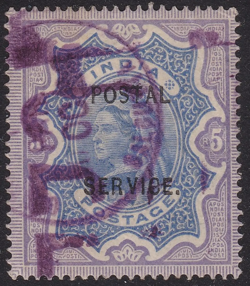 1895 INDIEN, SG 109 5r. ÜBERDRUCKT 'Postal Service' GEBRAUCHT AM Lot 95
