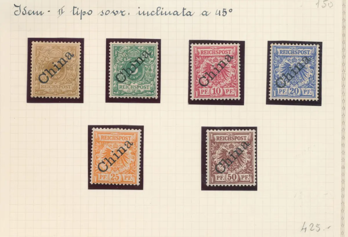 1897-1900 China Deutsche Büros - Yvert Nr. 1B/6B - 45 Schrägaufdruck - II Typ - MH* - postfrisch mit Originalgummi und Linguella-Spuren. Signierte Briefmarken Oliva Yvert Nr. 1/6 Euro 425 - A/Lotto 18