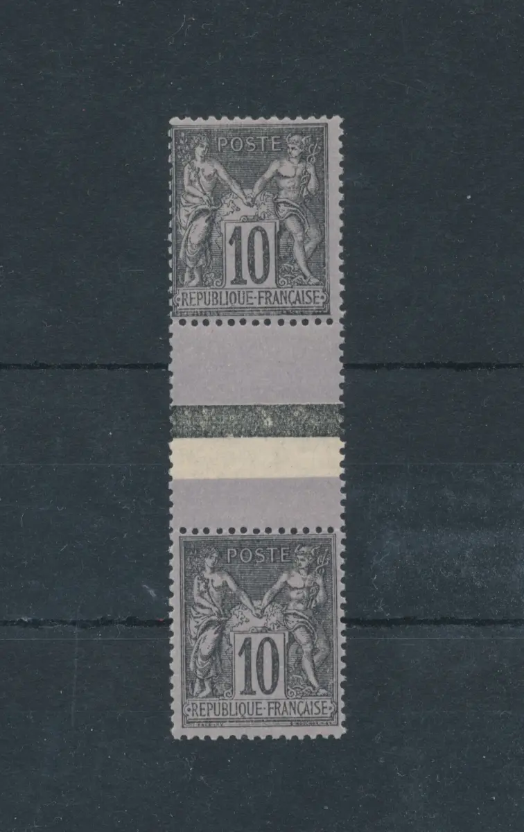 1898 FRANKREICH, Nr. 103c 10 c. schwarz auf lila MNH ** Frieden und Handel vertikales Paar I. und II. Typ Einheitskatalog Euro 670 Signatur Raybaudi - und Garantiestempel A Album Rot 4