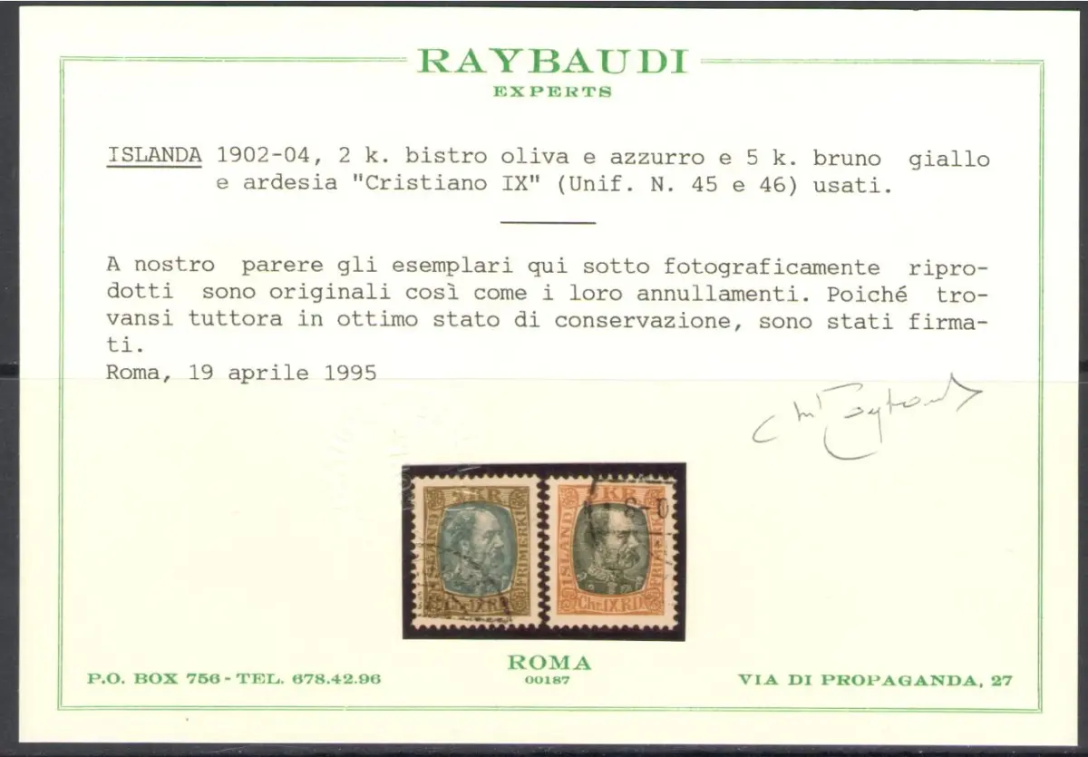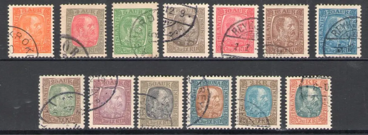 1902-04 ISLAND, 13 Werte Nr. 34B/46 Raybaudi Zertifikat - Gebraucht - Bildnis König Christian IX Einheitskatalog Euro 380 - grüne Box Ausland