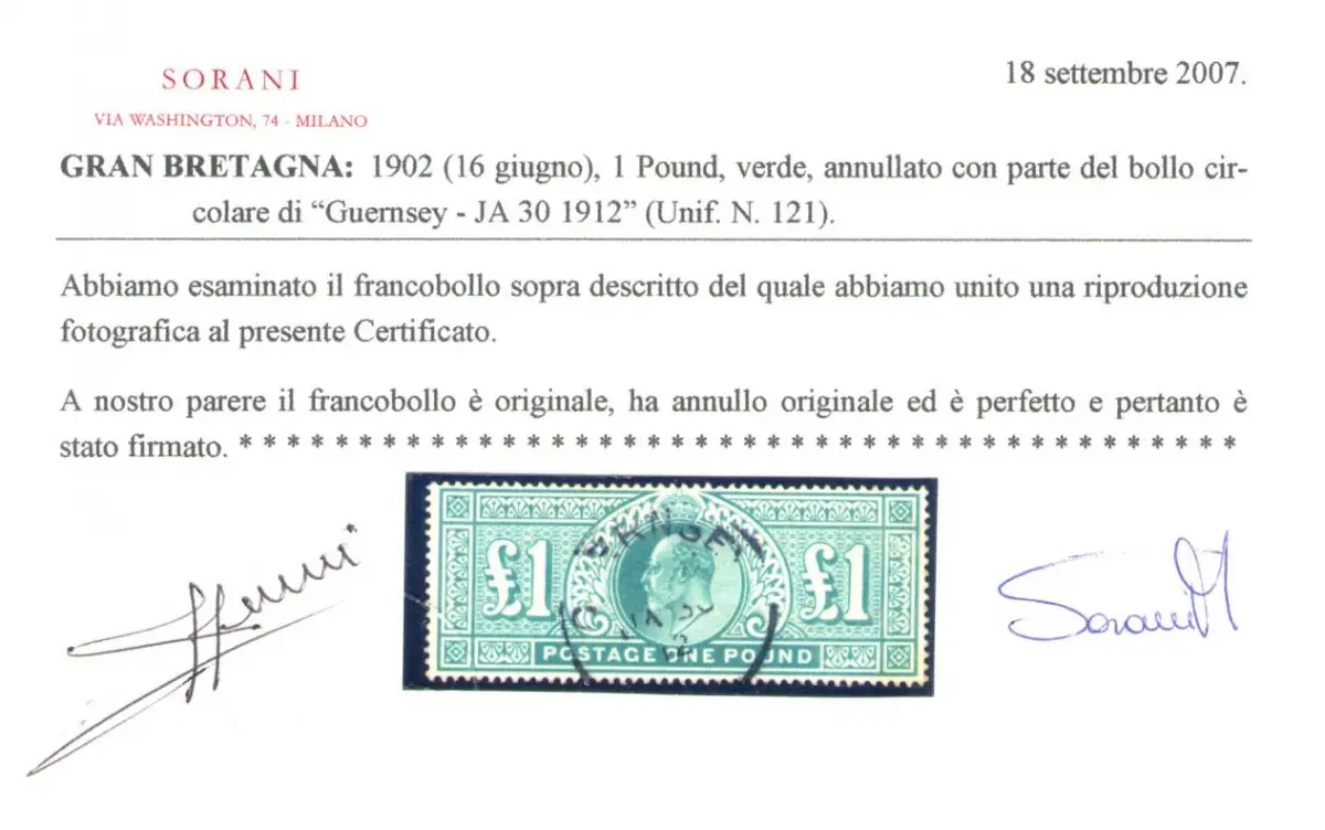 1902 GROSSBRITANNIEN - Stanley Gibbons Nr. 266 - 1 Pfund dull blue-green - Gebraucht - Sorani Zertifikat