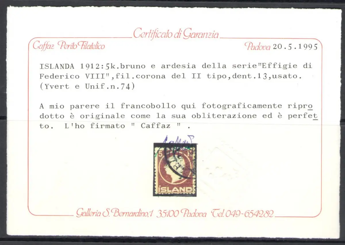 1912 Island, n. 68/74 - Bildnis Friedrichs VIII. - Gebraucht Raybaudi Zertifikat Einheitskatalog Euro 420 - Grüner Karton Ausland