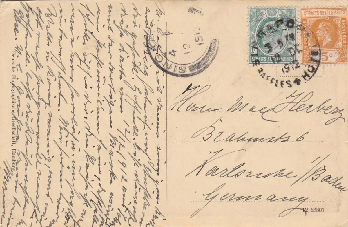 1912: Post card from Singapore to Germany; Mosquée