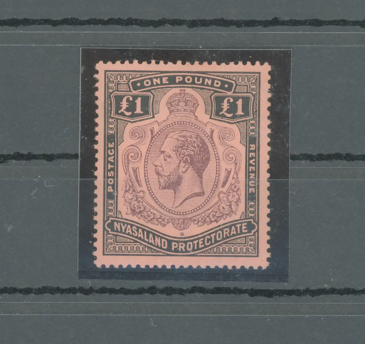 1913 Nyasaland Protectorate - Stanley Gibbons Nr. 98 - £ 1 lila und schwarz - paper red - Multi Crown CA - MLH*
