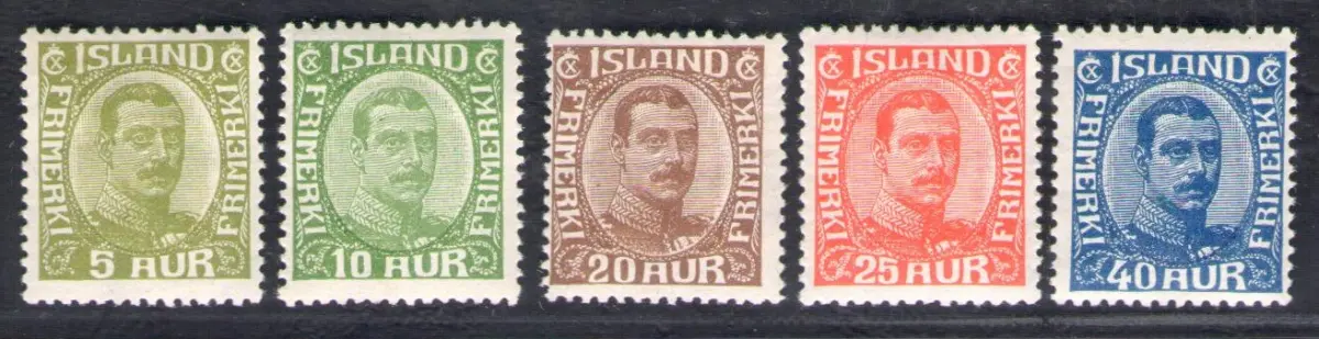 1921-22 Island, n. 105/09 - Bildnis von Christian X. - Farben gewechselt - MH* Einheitskatalog Euro 140 - grüne Box Ausland