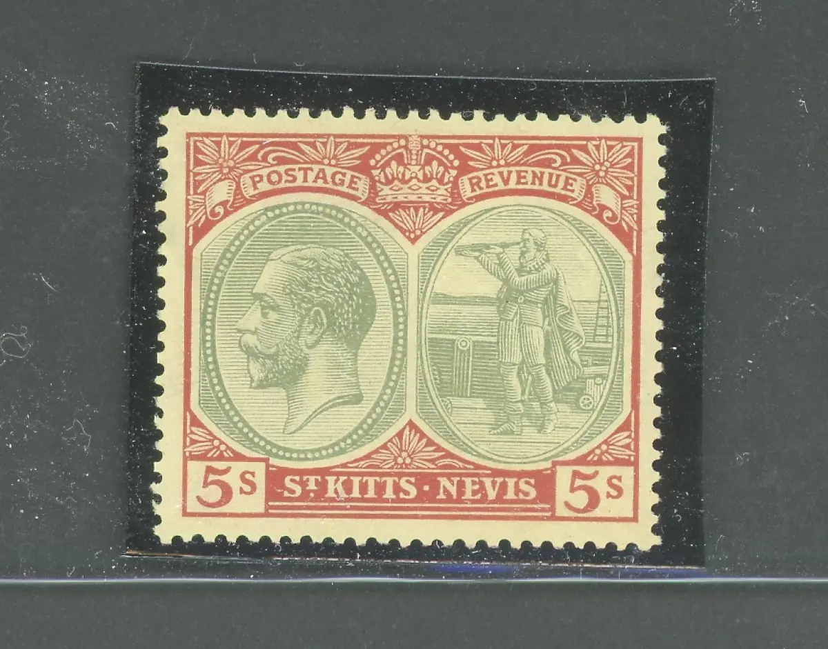 1921-29 ST. KITTS NEVIS, Stanley Gibbons n. 47c - 5s. grün und rot - postfrisch**