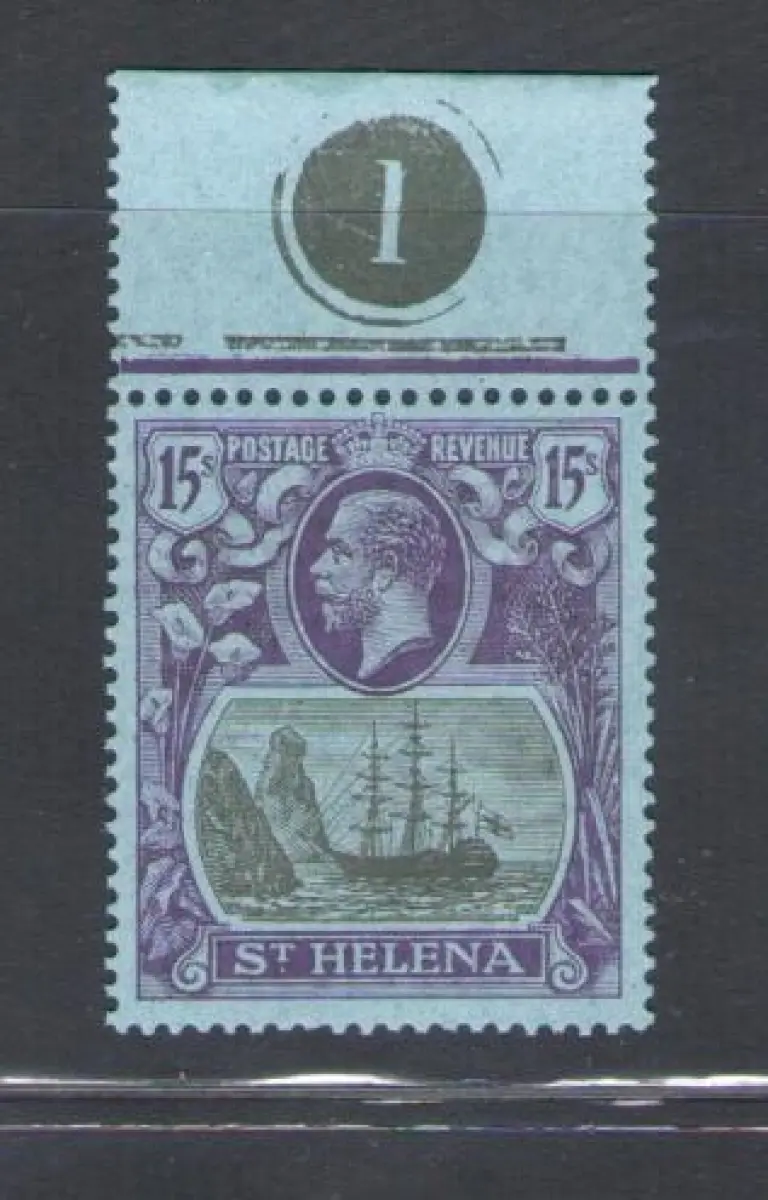 1922-37 St. Helena, Stanley Gibbons Nr. 113 - 15s. grey and purple/blue - MNH** - Vollgummi und Originalgummi und Tischnummer, sehr selten und schön in diesem Zustand STANLEY GIBBONS 2024 £ 1100 - Lot Kolonien Album Rot