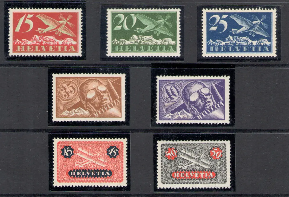 1923-37 SCHWEIZ - Luftpost Nr. A3-A9 - Komplette Serie 7 Werte - postfrisch** - postfrisch mit Original- und Vollgummi.