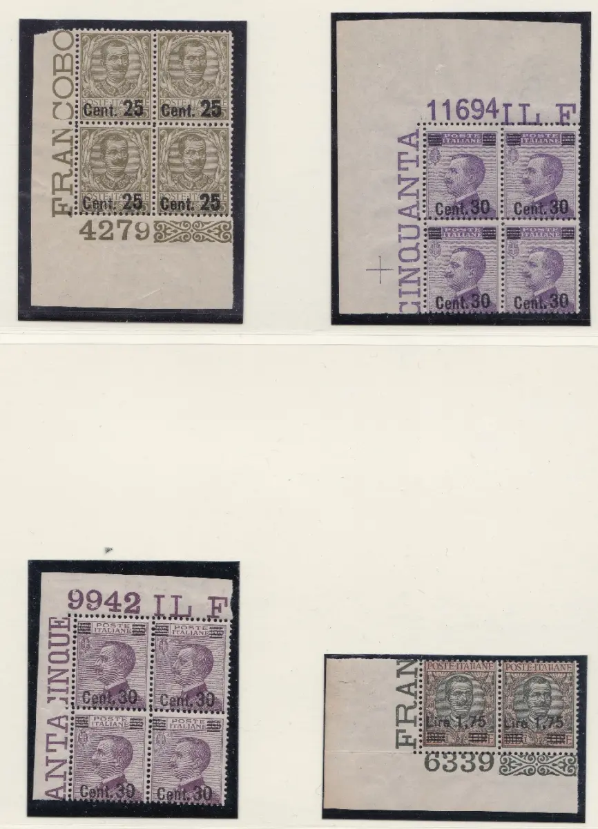 1924/25 ITALIEN - KÖNIGREICH, Nr. 175/182 die komplette Serie in 4er Blöcken (Nr. 182 paarweise) MIT TISCHNUMMER - EDLES SET MNH/** VOLLGUMMI Sächsischer Eurokatalog - A/M Lot 83