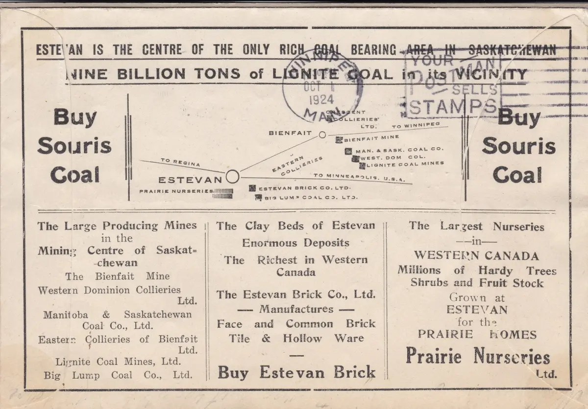 1924 KANADA - FIRST FLIGHT Estevan-Winnipeg auf vorbereitetem Brief mit Sonderstempel Müller 26