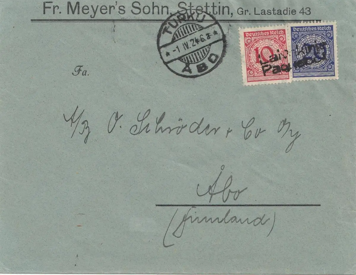 1924: Szczecin, fils de Meyer, après Turku-Abo-Finlande - Paqueboot