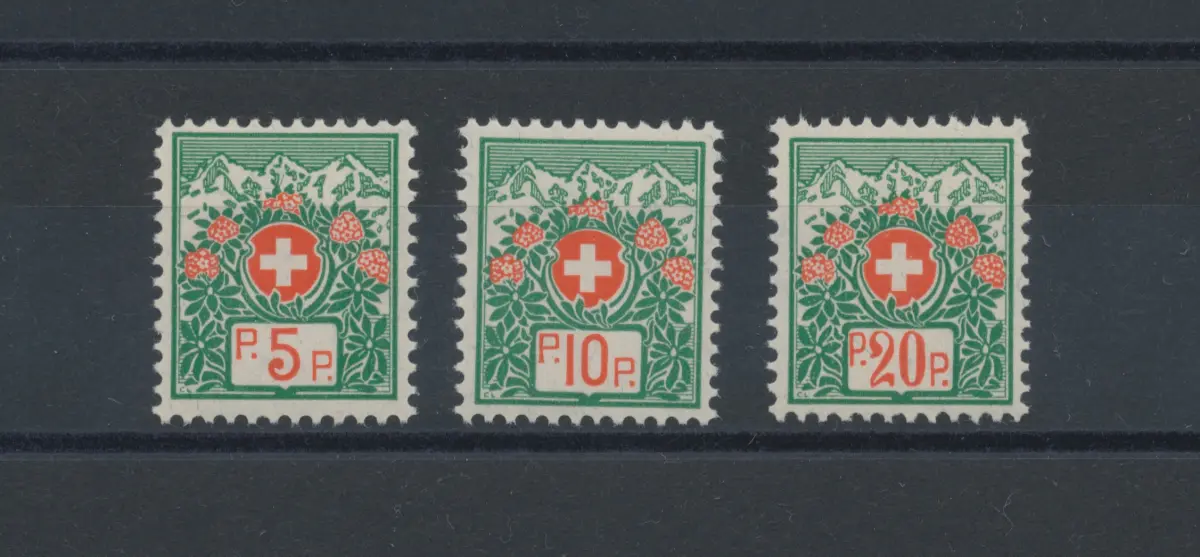 1927 SCHWEIZ - Franchise - Nr. 11B/13B - ohne Prüfnummer - MNH** - weißes Papier Katalog SBHV Euro 330 a/Lot Schweiz ROT LEUCCHTTURM
