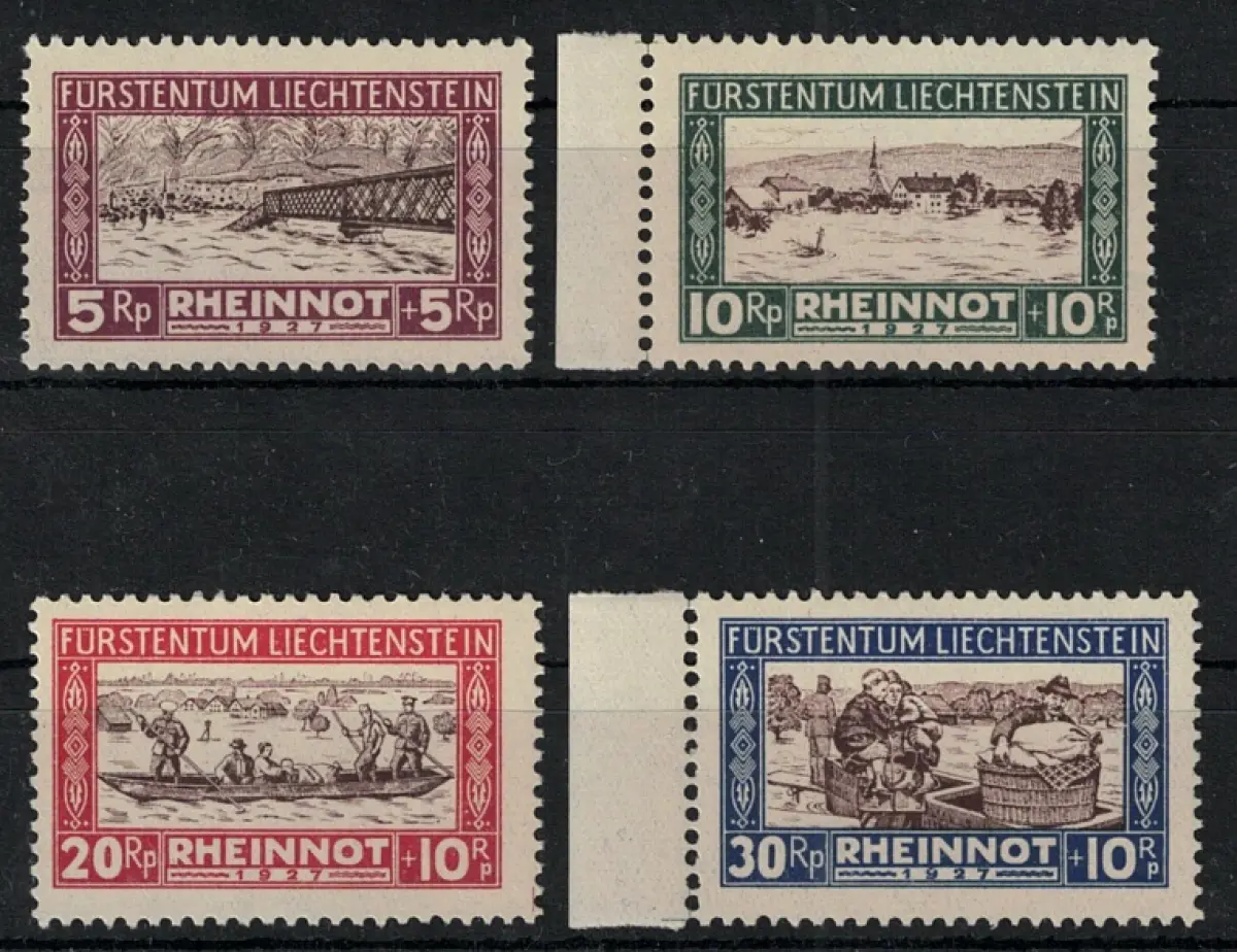 1928 Liechtenstein, # 78/81, Opfer Rheinüberlauf, postfrisch** Einheitskatalog Euro 320,00 Auslandskarton