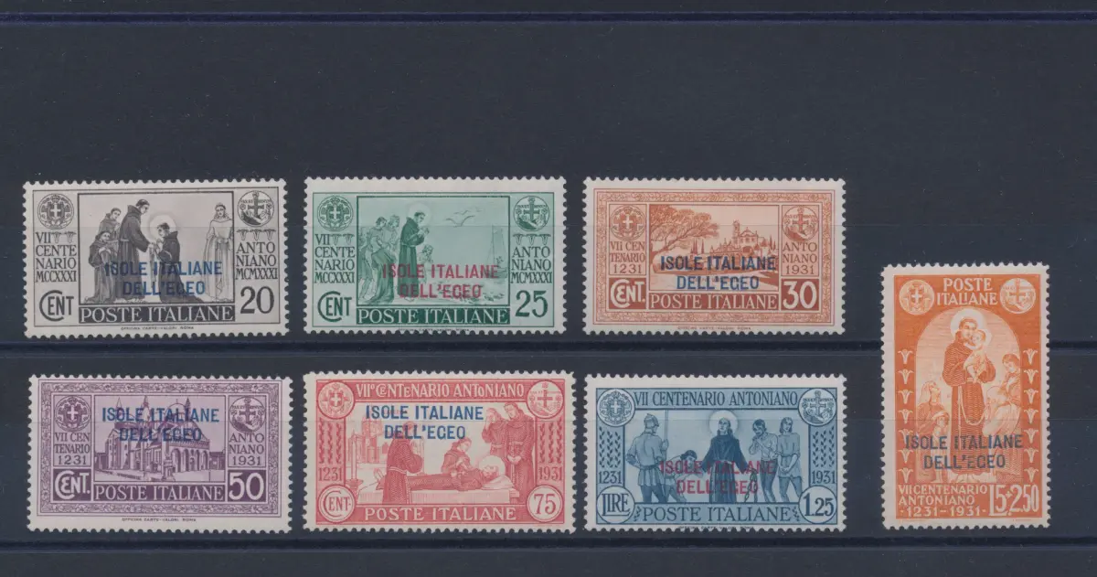 1931 ÄGÄIS - Nr.37/43 7 Werte MLH / * S. Antonio, Briefmarken Italien in geänderten Farben Sächsischer Katalog Euro 1125 Schwarze Box Kolonien