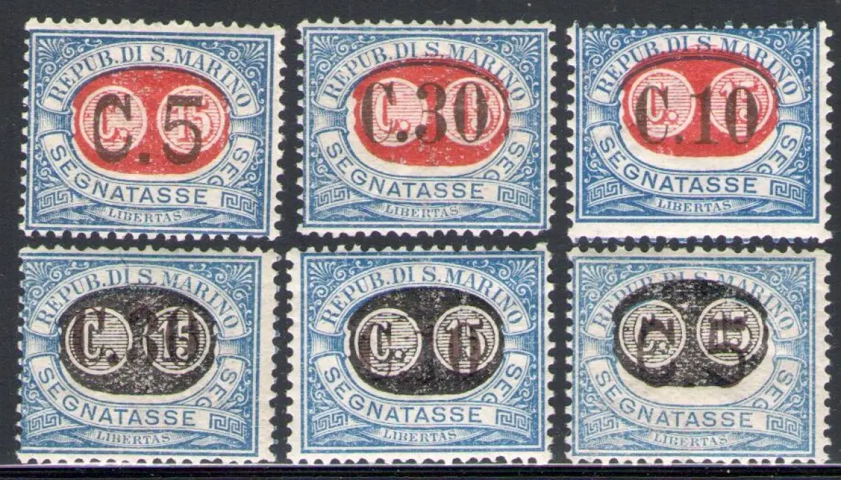 1931 SAN MARINO, Steuermarken - Essaggi - Schwarz-Rot-Aufdruck # 32A/34B MNH **