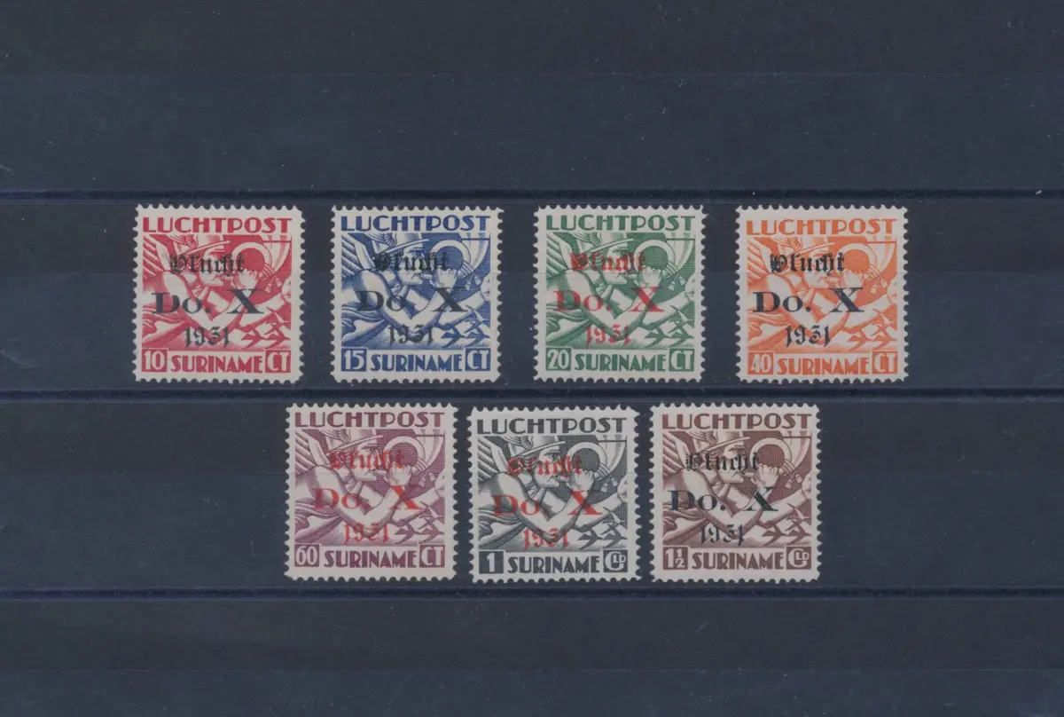 1931 SURINAME - PA Nr. 10A/10G 7er Set DO-X MLH*/MNH** Garantie Stempel - 4 Marken Vollgummi und 2 Originalgummi mit einer sehr leichten Spur von Linguella.