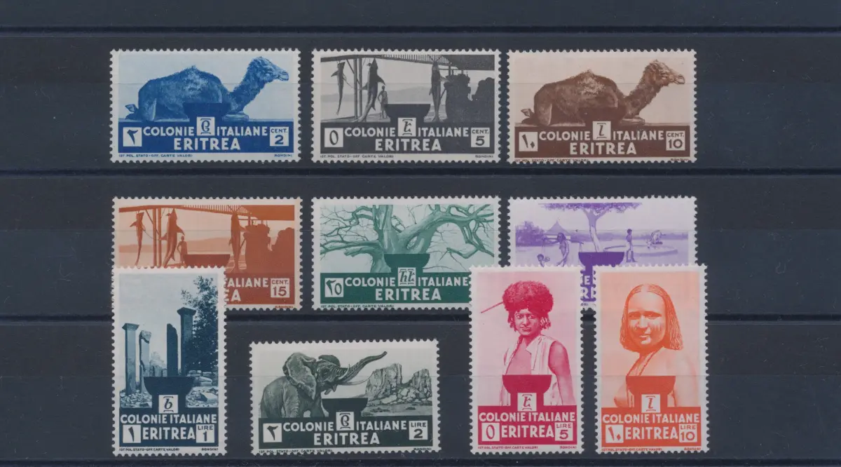 1933 ERITREA, Afrikanische Subjekte, Nr. 203/212, 10 Werte postfrisch ** Sächsischer Katalog Euro 500 Lot Tisch + blaues Album