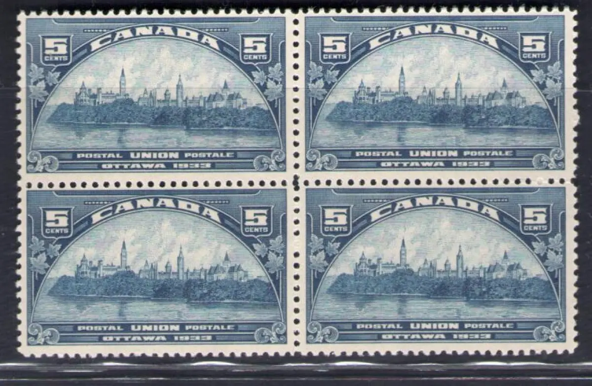 1933 Kanada - SG 329 - 5 Cent. blue MNH** - Viererblock - Neu mit Vollgummi und Original - Upu Stanley Gibbons Kongress Nr. 329 £ 52+++