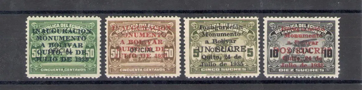1935 Ecuador - Luftpost - Yvert Nr. 32/35 - Einweihung des Simon Bolivar Denkmals in Quito - 4 Werte - MH*