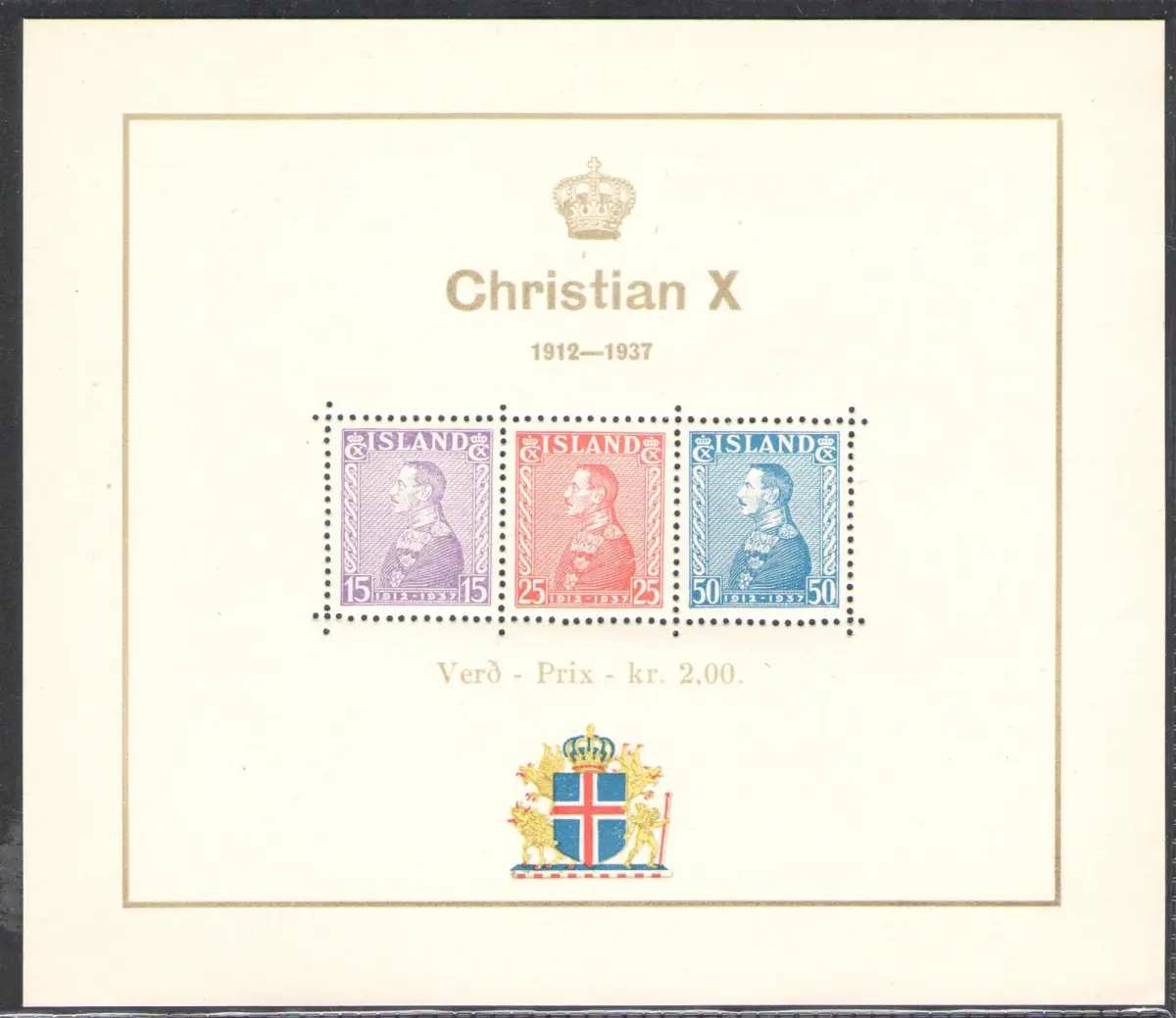 1937 ISLAND, 25. Jahrestag des Throns von König Christian X., BF 1, MNH **, VOLLGUMMI UND ORIGINAL.