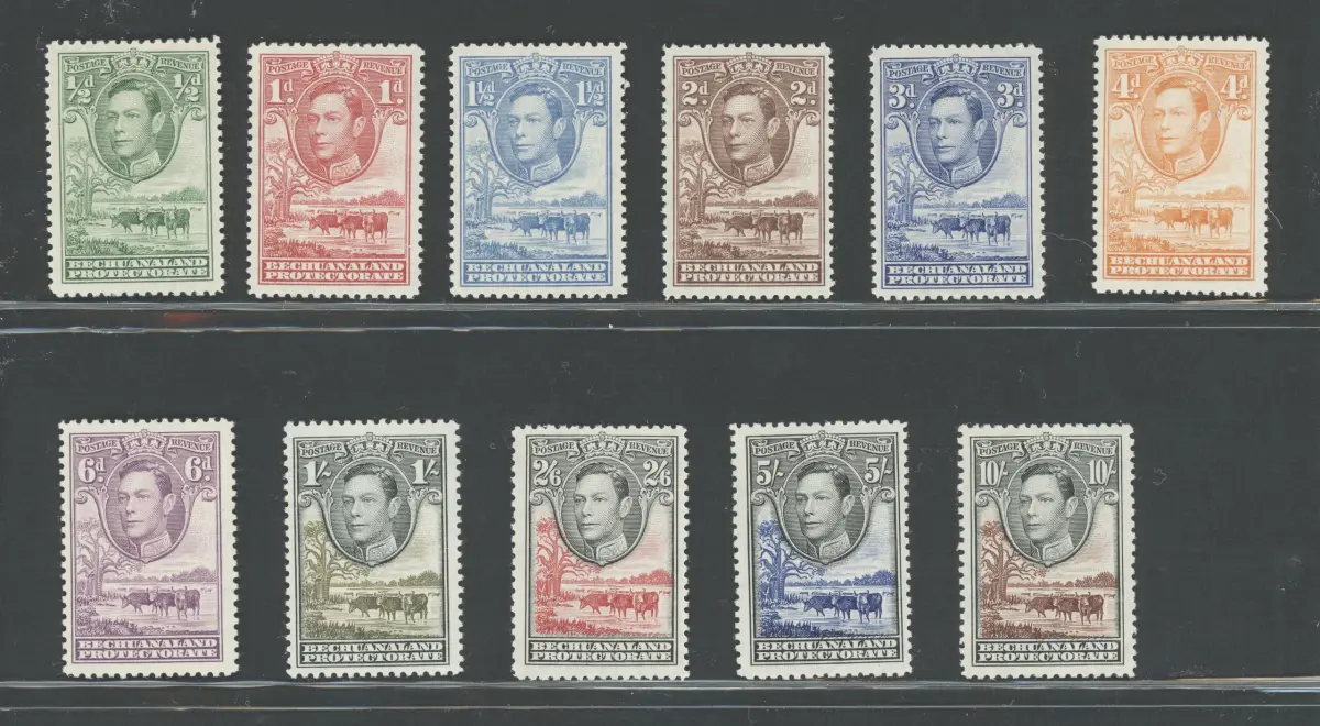 1938-52 Bechunaland Protectorate, Stanley Gibbons Nr. 118-28, 11 Werte - komplette Serie - MNH ** Stanley Gibbons Katalog 110 - Lot 301-6 - Lot rote Kolonien