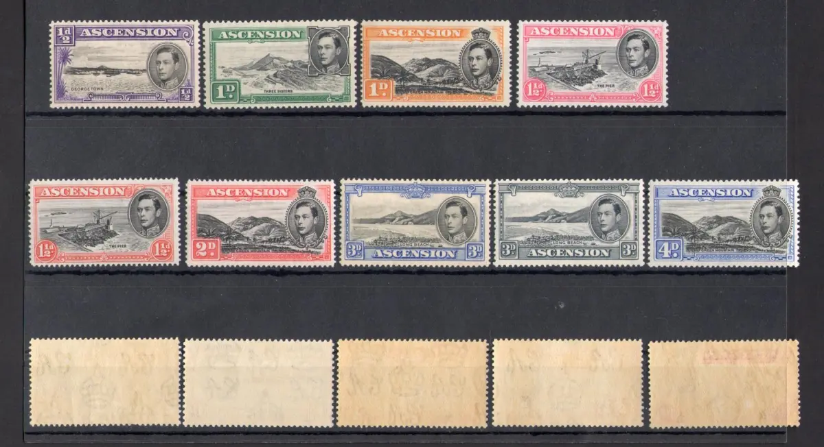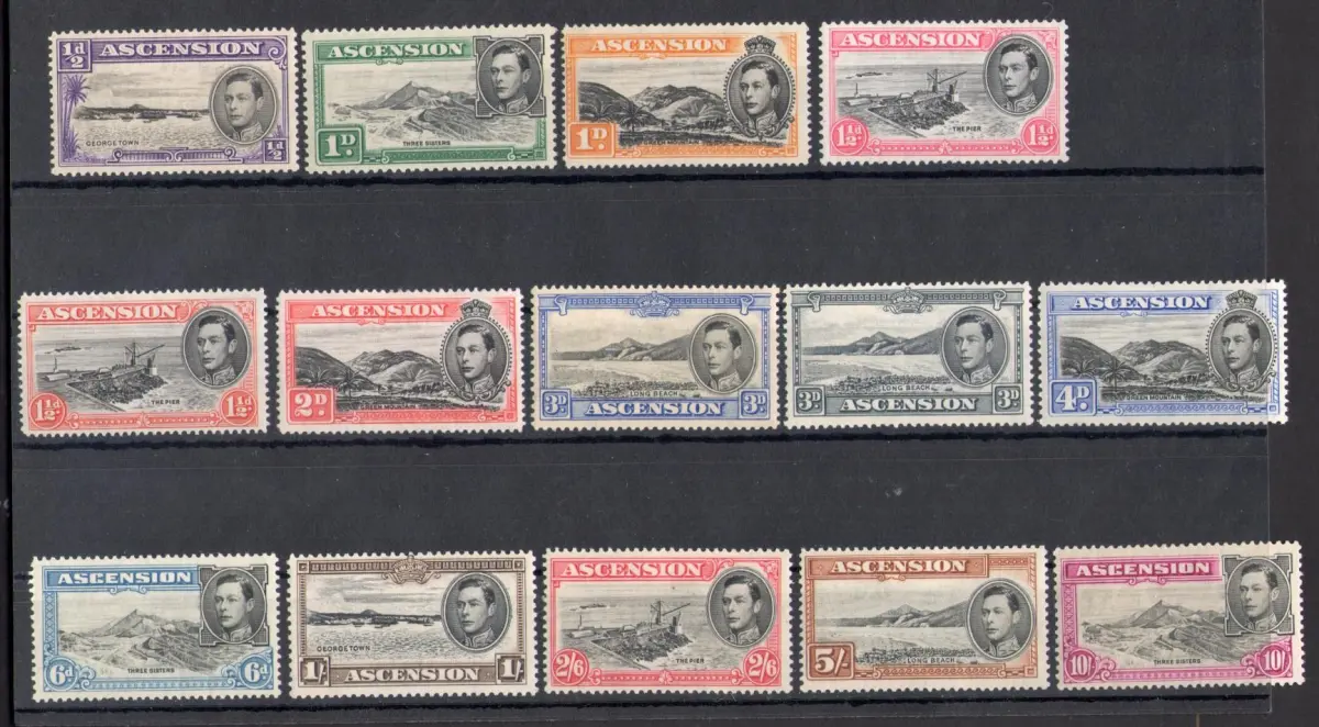 1938-53 ASCENSION, SG 38/47, 14 Werte - Georg VI und Ansichten - MH*