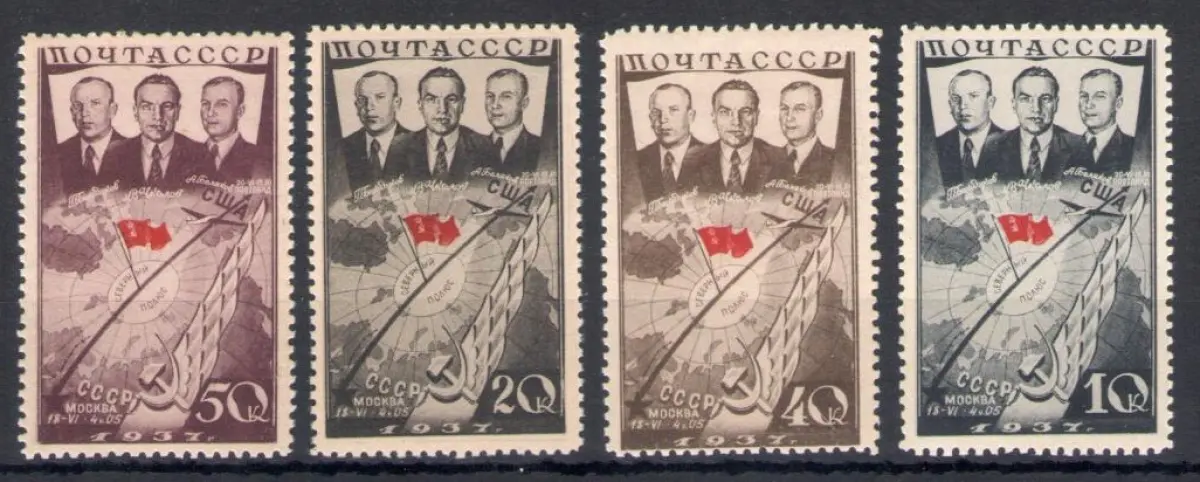 1938 RUSSLAND, Moskau-Portland - Nr. 628-31- MH* - Originalgummi mit Sprachspur Einheitskatalog 200 Euro - Themenbox 2