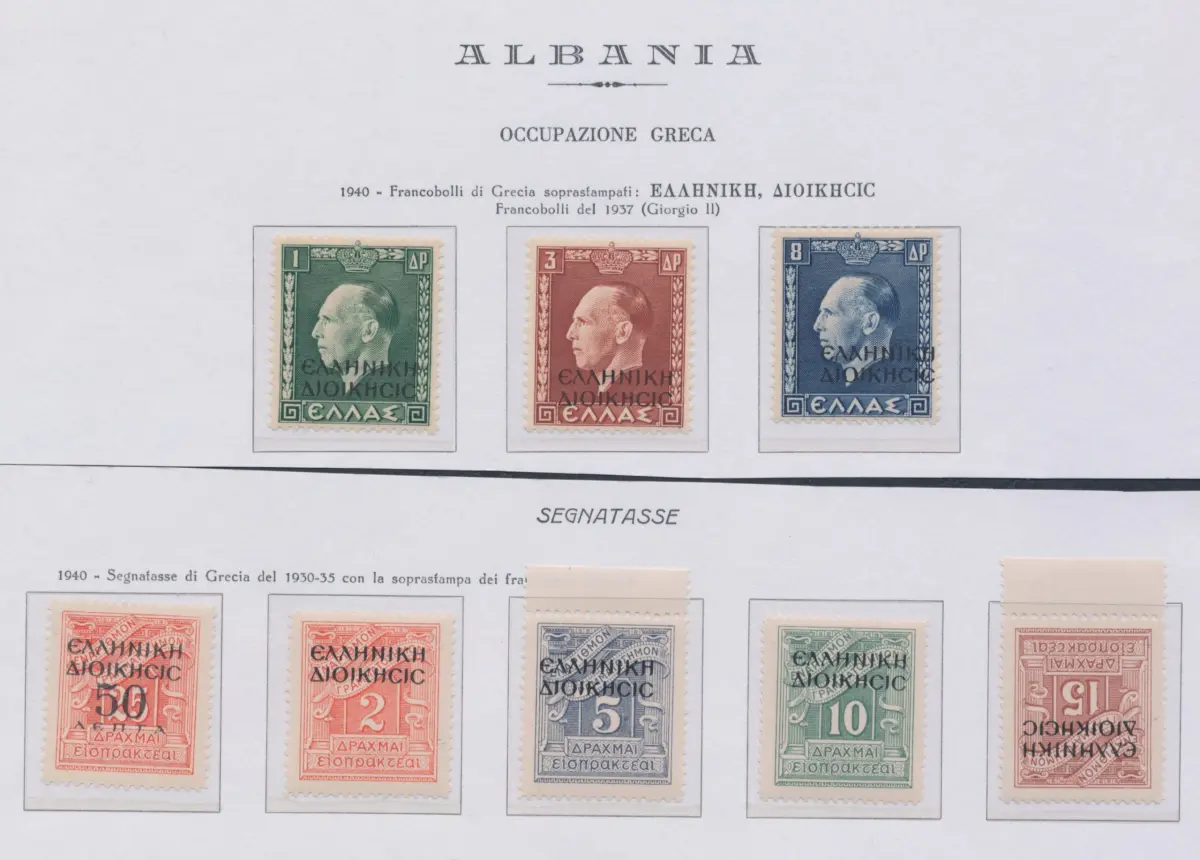1940 Albanien, Griechische Besetzung, Nr. 1/17 + 18/20 + Steuermarken 1/5, Serie mit 25 Werten, postfrisch ** Sächsischer Katalog Euro 612 Lot L19/16 Album Bordeaux Besetzungen