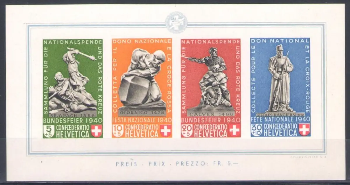 1940 SCHWEIZ, BF Nr. 5, Pro Patria, postfrisch ** Einheitskatalog Euro 320