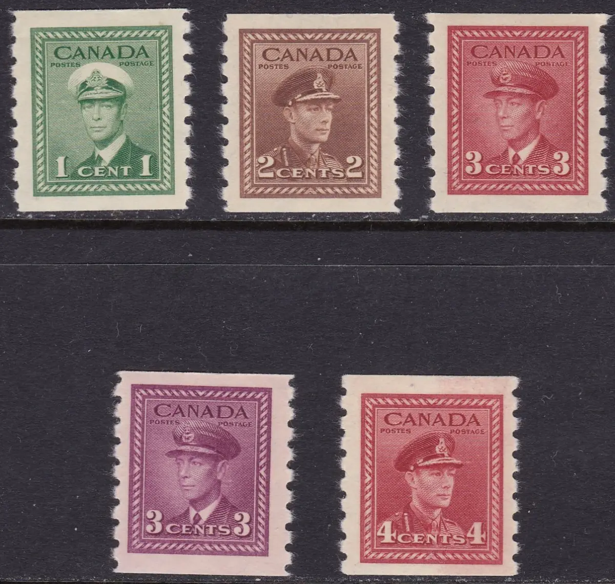 1942-43 KANADA - SG 389/393 Serie von 5 MNH / ** Rollenmarken, imp. 8 Stanley Gibbons Katalog Euro 27 GOZZ
