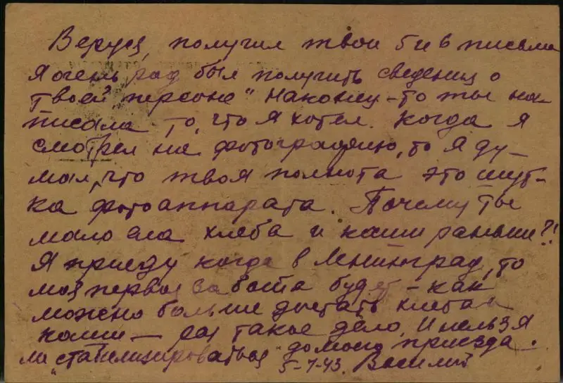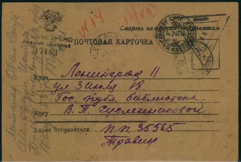1943 LENINGRADE BLOCKADE, fieldpost card from Mulowo (Archangelsk Oblast) to Leningrad.