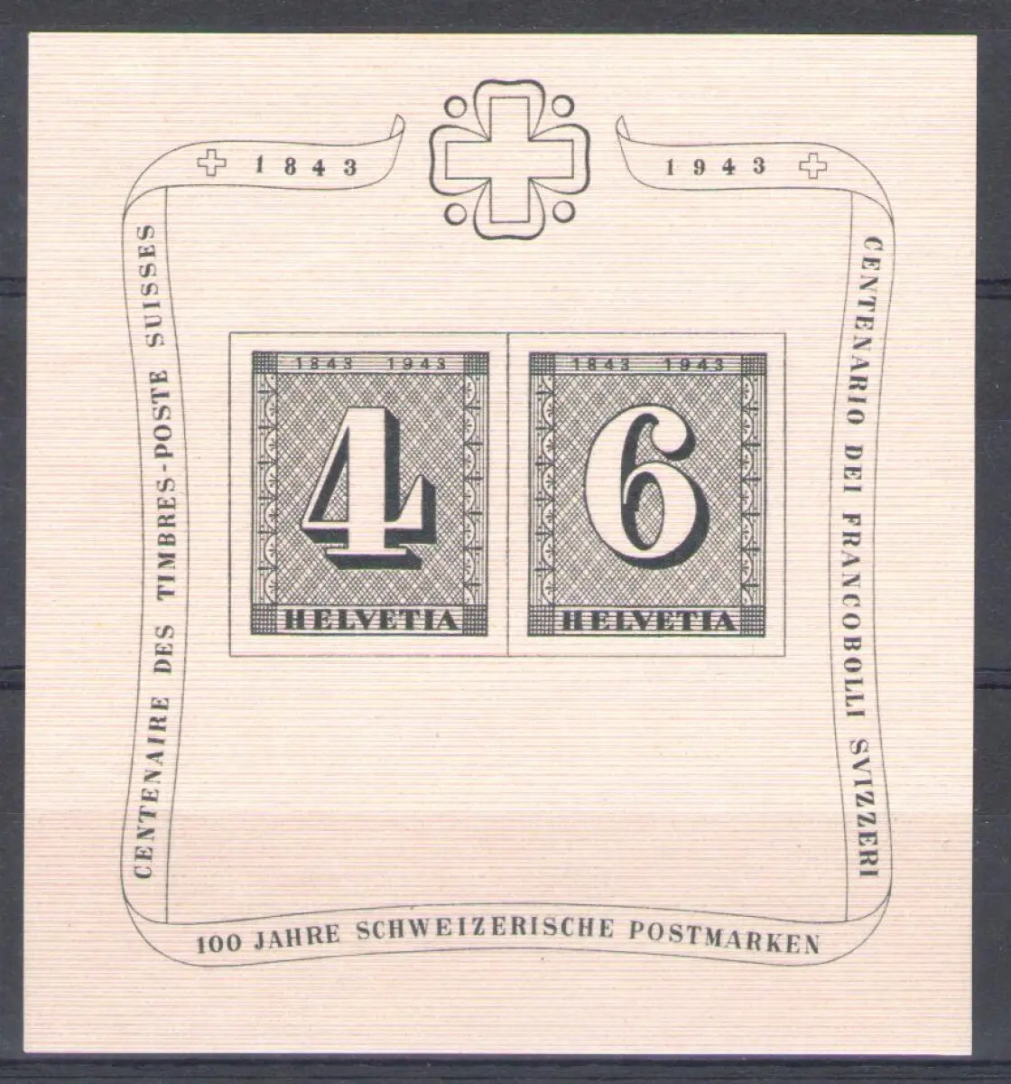 1943 SCHWEIZ, BF Nr. 9, Hundertjahrfeier der ersten Schweizer Briefmarke, postfrisch **